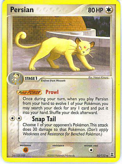 Type | Colorless | Pokemon serie | Delta Species | Stadie | Stage 1 | HP | 80 | Sjældenhed | Uncommon | Tilbagetrækning | 1 | Svaghed | F | Kortnummer | 50 | Evne | [CC] Snap Tail - Choose 1 of your opponent's Pokemon. This attack does 30 damage to that Pokemon. (Don't apply Weakness and Resistance for Benched Pokemon.) | Evne2 | [CC] Snap Tail - Choose 1 of your opponent's Pokemon. This attack does 30 damage to that Pokemon. (Don't apply Weakness and Resistance for Benched Pokemon.) | Kunstner | Naoyo Kimura |