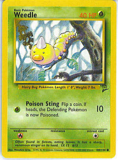 Type | Grass | Pokemon serie | Base Set 2 | Stadie | Basic | HP | 40 | Sjældenhed | Common | Tilbagetrækning | 1 | Svaghed | R | Kortnummer | 100 | Evne |