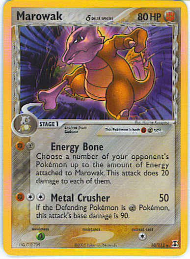 Type | Metal Fighting | Pokemon serie | Delta Species | Stadie | Stage 1 | HP | 80 | Sjældenhed | Rare | Tilbagetrækning | 1 | Svaghed | G | Kortnummer | 10 | Evne |