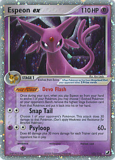 Type | Psychic | Pokemon serie | Unseen Forces | Stadie | Stage 1 | HP | 110 | Sjældenhed | Ultra-Rare | Svaghed | P | Kortnummer | 102 | Evne | [CC] Snap Tail - Choose 1 of your opponent's Pokemon. This attack does 30 damage to that Pokemon. (Don't apply Weakness and Resistance for Benched Pokemon.) [CCP] Psyloop (60+) Does 60 damage plus 30 more damage for each Trainer card your opponent has in play. | Evne2 | [CC] Snap Tail - Choose 1 of your opponent's Pokemon. This attack does 30 damage to that Pokemon. (Don't apply Weakness and Resistance for Benched Pokemon.) [CCP] Psyloop (60+) Does 60 damage plus 30 more damage for each Trainer card your opponent has in play. | Kunstner | Ryo Ueda |