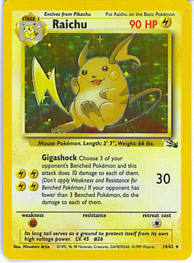 Type | Lightning | Pokemon serie | Fossil | Stadie | Stage 1 | HP | 90 | Sjældenhed | Rare | Tilbagetrækning | 1 | Svaghed | F | Kortnummer | 14 | Evne |