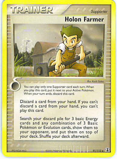 Discard a card from your hand. If you can't discard a card from your hand, you can't play this card. Search your discard pile for 3 basic Energy cards and any combination of 3 Basic Pokemon or Evolution cards, show them to your opponent, and put them on top of your deck. Shuffle your deck afterward.
