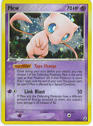 [CP] Link Blast (50) - If Mew and the Defending Pokemon have a different amount of Energy attached to them, this attack's base damage is 20 instead of 50.