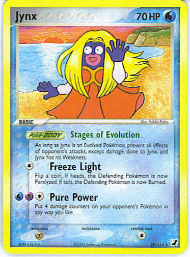 Evne of opponent's attacks, except damage, done to Jynx, and Jynx has no Weakness. (Poke-BODY)