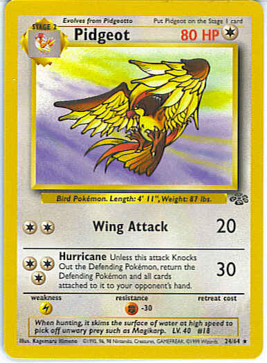 Type | Colorless | Pokemon serie | Jungle | Stadie | Stage 2 | HP | 80 | Sjældenhed | Rare | Modstand | F | Svaghed | L | Kortnummer | 24 | Evne |