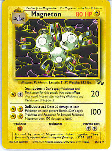[LLLL] Selfdestruct (100) Does 20 damage to each Pokemon on each player's Bench. (Don't apply Weakness and Resistance for Benched Pokemon.) Magneton does 100 damage to itself.