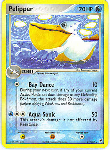 Type | Water | Pokemon serie | Deoxys | Stadie | Stage 1 | HP | 70 | Sjældenhed | Rare | Tilbagetrækning | 1 | Modstand | F | Svaghed | L | Kortnummer | 21 | Evne |