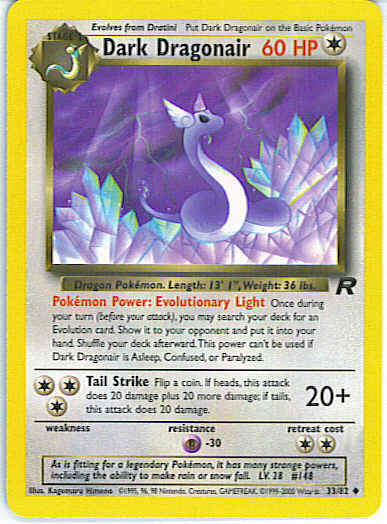 Type | Colorless | Pokemon serie | Team Rocket | Stadie | Stage 1 | HP | 60 | Sjældenhed | Uncommon | Tilbagetrækning | 2 | Modstand | P | Kortnummer | 33 | Evne |