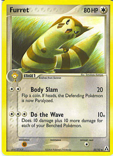 Evne2[CC] Body Slam (20) Flip a coin. If heads, the Defending Pokemon is now Paralyzed.