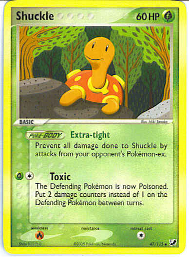 Type | Grass | Pokemon serie | Unseen Forces | Stadie | Basic | HP | 60 | Sjældenhed | Uncommon | Tilbagetrækning | 1 | Svaghed | R | Kortnummer | 47 | Evne | [CG] Toxic - The Defending Pokemon is now Poisoned. Put 2 damage counters instead of 1 on the Defending Pokemon between turns. | Evne2 | [CG] Toxic - The Defending Pokemon is now Poisoned. Put 2 damage counters instead of 1 on the Defending Pokemon between turns. | Kunstner | Miki Tanaka |