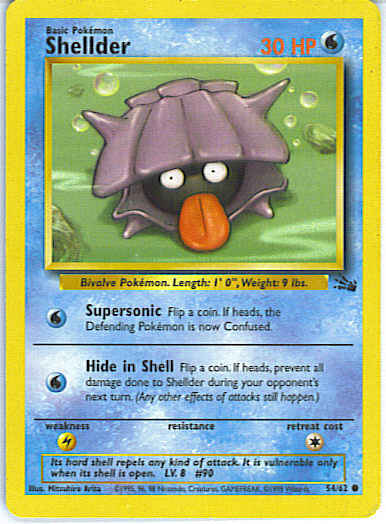 [W] Hide in Shell - Flip a coin. If heads, prevent all damage done to Shellder during your opponent's next turn. (Any other effects of attacks still happen.)