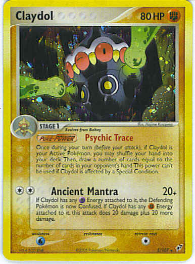 [CC] Ancient Mantra (20) If Claydol has any P Energy attached to it, the Defending Pokemon is now Confused. If Claydol has any F Energy attached to it, this attack does 20 damage plus 20 more damage.
