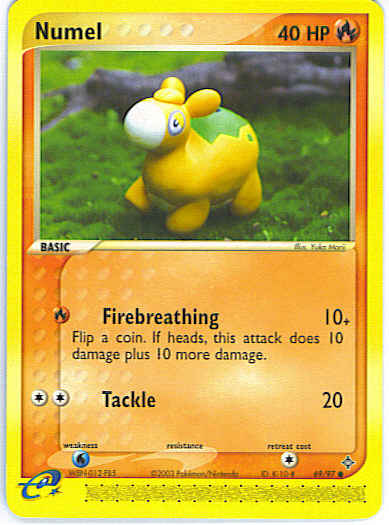 Type | Fire | Pokemon serie | Dragon | Stadie | Basic | HP | 40 | Sjældenhed | Common | Tilbagetrækning | 1 | Svaghed | W | Kortnummer | 69 | Evne | [R] Firebreathing (10+) Flip a coin. If heads, this attack does 10 damage plus 10 more damage. [CC] Tackle (20) | Evne2 | [R] Firebreathing (10+) Flip a coin. If heads, this attack does 10 damage plus 10 more damage. [CC] Tackle (20) | Kunstner | Yuka Morii |