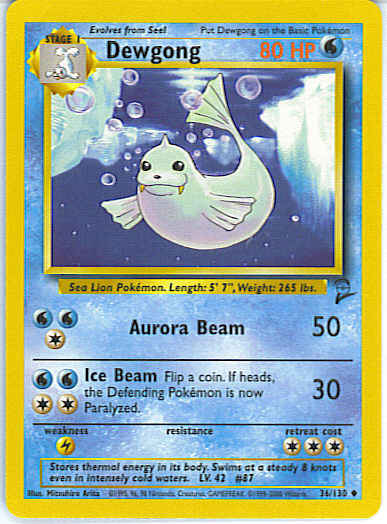 Type | Water | Pokemon serie | Base Set 2 | Stadie | Stage 1 | HP | 80 | Sjældenhed | Uncommon | Tilbagetrækning | 3 | Svaghed | L | Kortnummer | 36 | Evne |