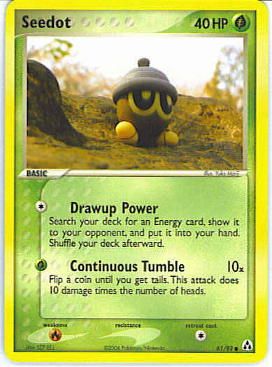 Evne2[C] Drawup Power - Search your deck for an Energy card, show it to your opponent, and put it into your hand. Shuffle your deck afterward.