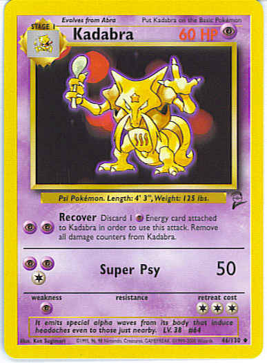 [PP] Recover - Discard 1 Psychic Energy card to use this attack. Remove all damage counters from Kadabra.