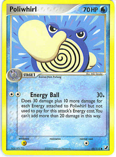 Evne[CC] Energy Ball (30+) Does 30 damage plus 10 more damage for each Energy attached to Poliwhirl but not used to pay for this attack's Energy cost. You can't add more than 20 damage in this way.