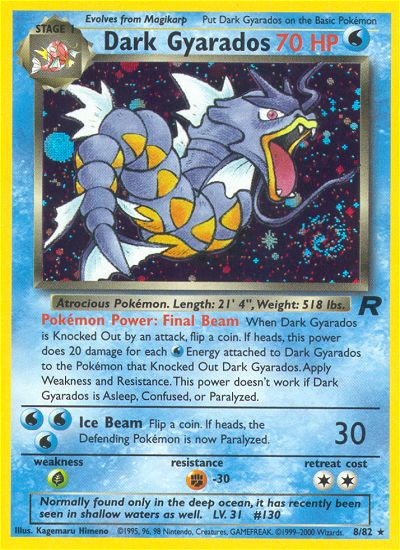 Type | Water | Pokemon serie | Team Rocket | Stadie | Stage 1 | HP | 70 | Sjældenhed | Rare | Tilbagetrækning | 2 | Modstand | F | Svaghed | G | Kortnummer | 8 | Evne |