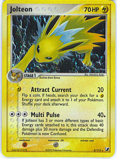[CCC] Multi Pulse (40+) If Jolteon has 3 or more different types of basic Energy cards attached to it, this attack does 40 damage plus 20 more damage and the Defending Pokemon is now Confused.