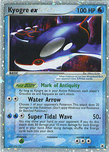 Type | Water | Pokemon serie | Hidden Legends | Stadie | Basic | HP | 100 | Sjældenhed | Ultra-Rare | Tilbagetrækning | 3 | Svaghed | G | Kortnummer | 94 | Evne | [CC] Water Arrow - Choose 1 of your opponent's Pokemon. This attack does 20 damage to that Pokemon. (Don't apply Weakness and Resistance for Benched Pokemon.) [CWW] Super Tidal Wave (50+) You may show your hand to your opponent. If you do, this attack does 50 damage plus 10 more damage for each Energy card in your hand. After doing damage, shuffle the Energy cards back into your deck. | Evne2 | [CC] Water Arrow - Choose 1 of your opponent's Pokemon. This attack does 20 damage to that Pokemon. (Don't apply Weakness and Resistance for Benched Pokemon.) [CWW] Super Tidal Wave (50+) You may show your hand to your opponent. If you do, this attack does 50 damage plus 10 more damage for each Energy card in your hand. After doing damage, shuffle the Energy cards back into your deck. | Kunstner | Hikaru Koike |