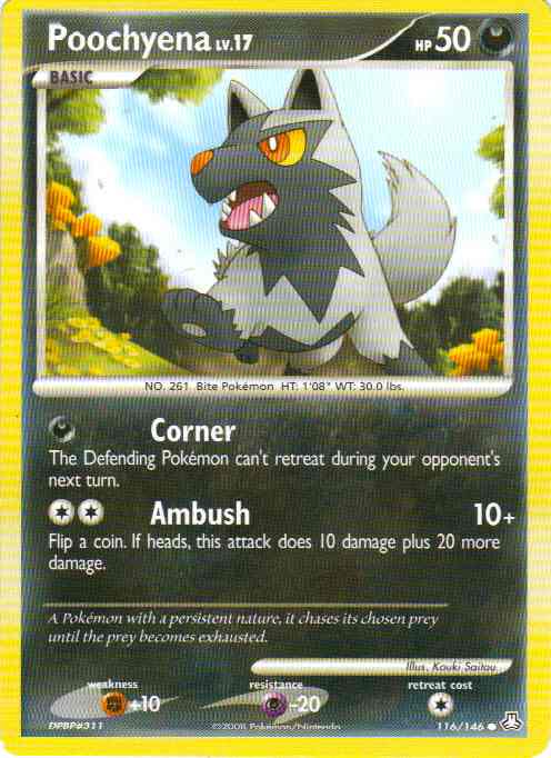 Type | Darkness | Pokemon serie | Legends Awakened | Stadie | Basic | HP | 50.0 | Sjældenhed | Common | Tilbagetrækning | 1.0 | Modstand | P-20 | Svaghed | F+10 | Kortnummer | 116 | Evne |