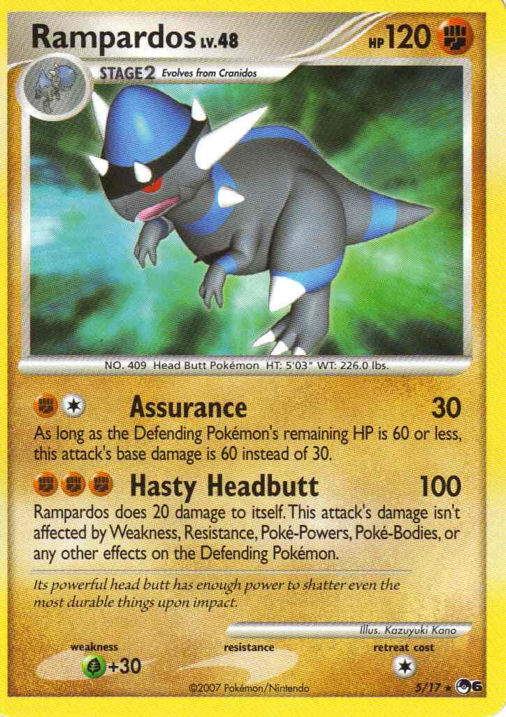 [FFF] Hasty Headbutt (100) Rampardos does 20 damage to itself. This attack's damage isn't affected by Weakness, Resistance, Poke-Powers, Poke-Bodies, or any other effects on the Defending Pokemon.