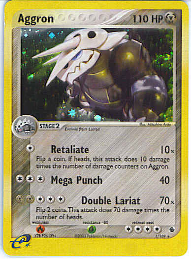 Evne2[C] Retaliate (10x) Flip a coin. If heads, this attack does 10 damage times the number of damage counters on Aggron.