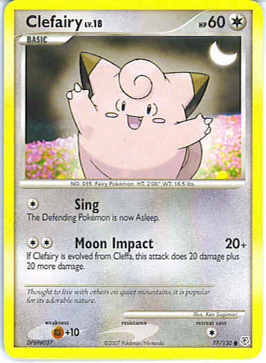 [CC] Moon Impact (20+) If Clefairy is evolved from Cleffa, this attack does 20 damage plus 20 more damage.