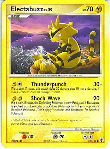 [CL] Thunderpunch (30+) Flip a coin. If heads, this attack does 30 damage plus 10 more damage. If tails, Electabuzz does 10 damage to itself.