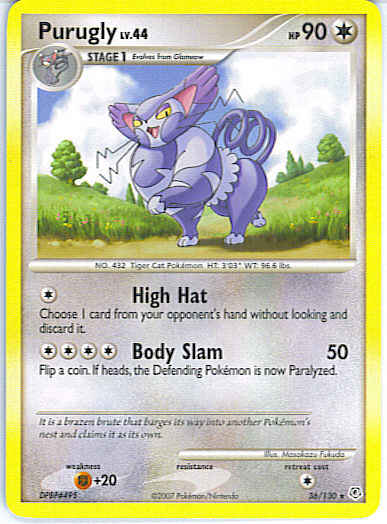 Type | Colorless | Pokemon serie | Diamond and Pearl | Stadie | Stage 1 | HP | 90 | Sjældenhed | Rare | Tilbagetrækning | 1 | Svaghed | F+20 | Kortnummer | 36 | Evne |