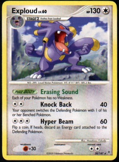 Type | Colorless | Pokemon serie | Supreme Victors | Stadie | Stage 2 | HP | 130 | Sjældenhed | Rare | Tilbagetrækning | 2 | Svaghed | F+30 | Kortnummer | 28 | Evne |