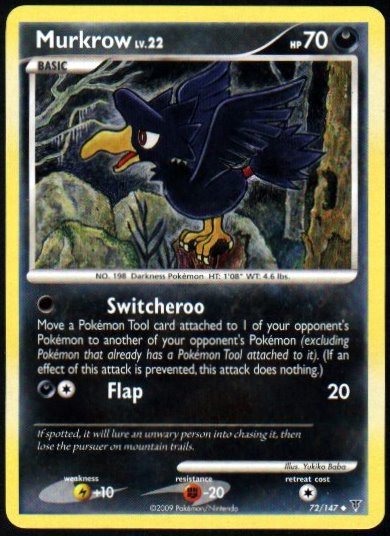 Switcheroo - Move a Pokemon Tool card attached to 1 of your opponent's Pokemon to another of your opponent's Pokemon (excluding Pokemon that already has a Pokemon Tool attached to it). (If an effect of this attack is prevented, this attack does nothing.