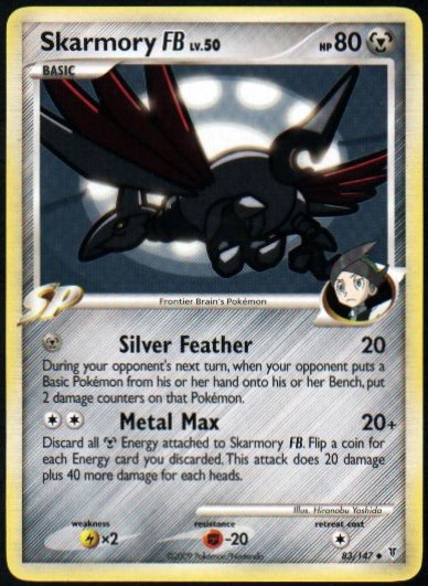 [CC] Metal Max (20+) Discard all [M] Energy attached to Skarmory FB. Flip a coin for each Energy card you discarded. This attack does 20 damage plus 40 more damage for each heads.