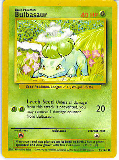 Evne2 [GG] Leech Seed (20) Unless all damage from this attack is prevented, you may remove 1 damage counter from Bulbasaur.