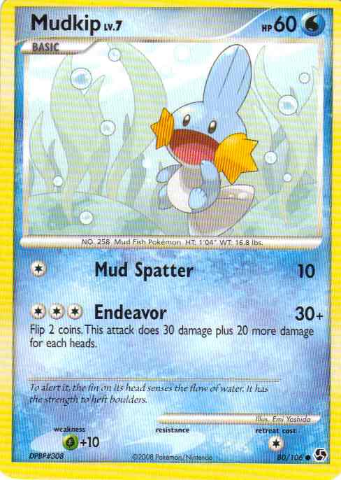 Type | Water | Pokemon serie | Great Encounters | Stadie | Basic | HP | 60.0 | Sjældenhed | Common | Tilbagetrækning | 1.0 | Svaghed | G+10 | Kortnummer | 80 | Evne |