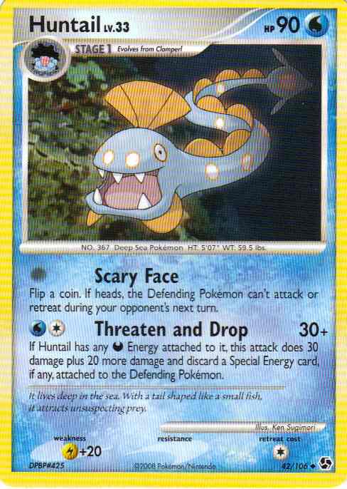 [CW] Threaten and Drop (30+) If Huntail has any D Energy attached to it, this attack does 30 damage plus 20 more damage and discard a Special Energy card, if any, attached to the Defending Pokemon.
