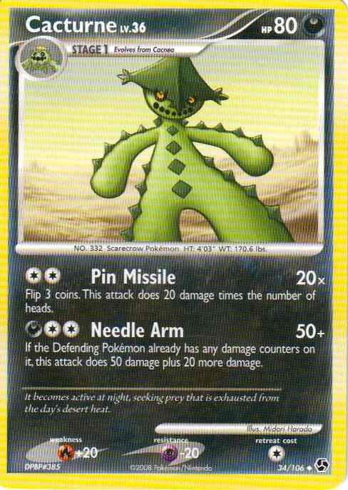 [CCD] Needle Arm (50+) If the Defending Pokemon already has any damage counters on it, this attack does 50 damage plus 20 more damage.