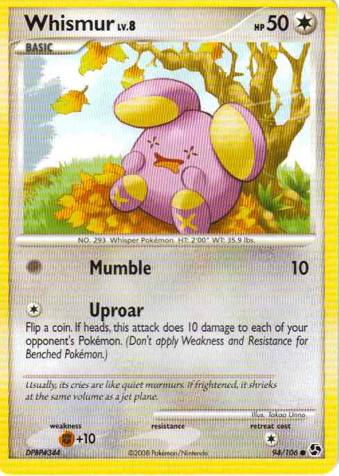 [C] Uproar - Flip a coin. If heads, this attack does 10 damage to each of your opponent's Pokemon. (Don't apply Weakness and Resistance for Benched Pokemon.)