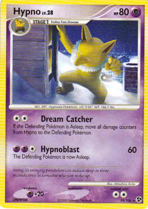 Evne[CC] Dream Catcher - If the Defending Pokemon is Asleep, move all damage counters from Hypno to the Defending Pokemon.