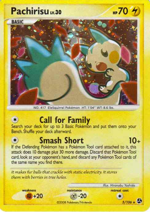 [C] Smash Short (10+) If the Defending Pokemon has a Pokemon Tool card attached to it, this attack does 10 damage plus 30 more damage. Discard that Pokemon Tool card, look at your opponent's hand, and discard any Pokemon Tool cards of the same name you find there.