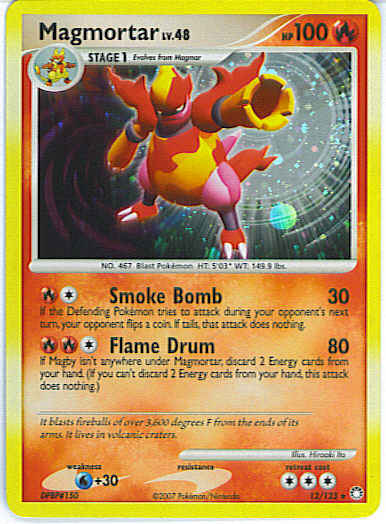 [CRR] Flame Drum (80) If Magby isn't anywhere under Magmortar, discard 2 Energy cards from your hand. (If you can't discard 2 Energy cards from your hand, this attack does nothing.)