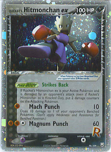 Type | Darkness | Pokemon serie | Team Rocket Returns | Stadie | Basic | HP | 100 | Sjældenhed | Ultra-Rare | Tilbagetrækning | 1 | Svaghed | P | Kortnummer | 98 | Evne | [F] Mach Punch (10) Does 10 damage to 1 of your opponent's Benched Pokemon. (Don't apply Weakness and Resistance for Benched Pokemon.) [CFF] Magnum Punch (60) | Evne2 | [F] Mach Punch (10) Does 10 damage to 1 of your opponent's Benched Pokemon. (Don't apply Weakness and Resistance for Benched Pokemon.) [CFF] Magnum Punch (60) | Kunstner | Mitsuhiro Arita |