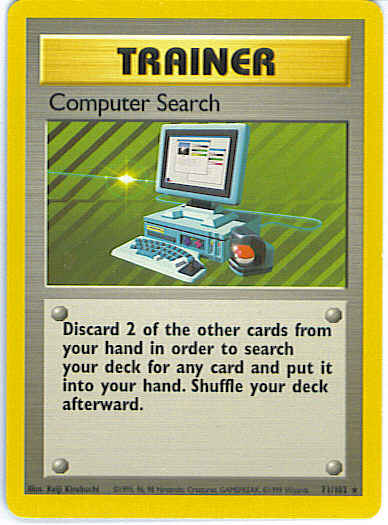 Discard 2 other cards from your hand in order to search your deck for any card and put it into your hand. Shuffle your deck afterward.