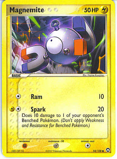 Type | Lightning | Pokemon serie | Power Keepers | Stadie | Basic | HP | 50 | Sjældenhed | Common | Tilbagetrækning | 1 | Modstand | M | Svaghed | F | Kortnummer | 54 | Evne |