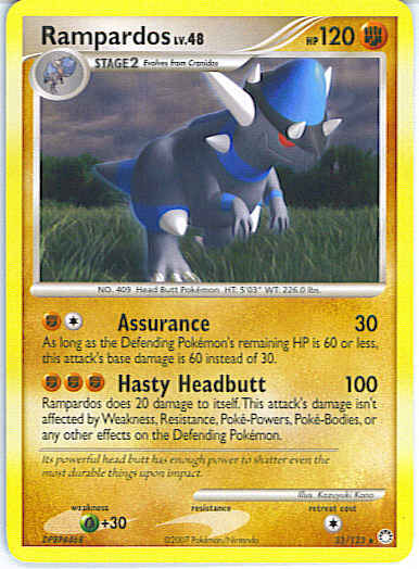 [FFF] Hasty Headbutt (100) Rampardos does 20 damage to itself. This attack's damage isn't affected by Weakness, Resistance, Poke-Powers, Poke-Bodies, or any other effects on the Defending Pokemon.
