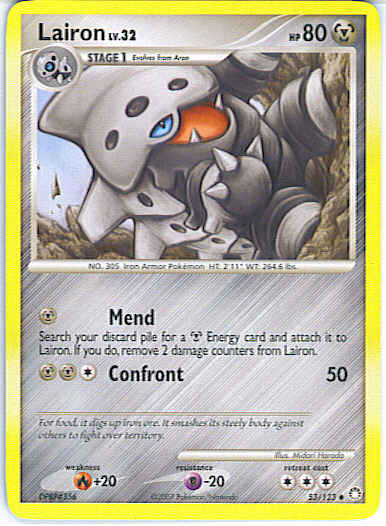 [M] Mend - Search your discard pile for a M Energy card and attach it to Lairon. If you do, remove 2 damage counters from Lairon.