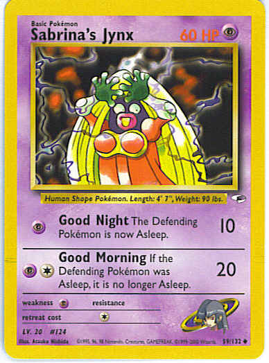 Type | Psychic | Pokemon serie | Gym Heroes | Stadie | Basic | HP | 60 | Sjældenhed | Uncommon | Tilbagetrækning | 1 | Svaghed | P | Kortnummer | 59 | Evne |