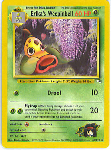 Type | Grass | Pokemon serie | Gym Heroes | Stadie | Stage 1 | HP | 60 | Sjældenhed | Uncommon | Tilbagetrækning | 1 | Svaghed | R | Kortnummer | 48 | Evne |