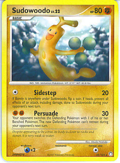 [C] Sidestep (20) If Bonsly is anywhere under Sudowoodo, flip a coin. If heads, prevent all effects of an attack, including damage, done to Sudowoodo during your opponent's next turn.