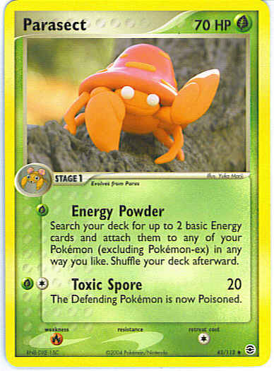 Type | Grass | Pokemon serie | Fire Red Leaf Green | Stadie | Stage 1 | HP | 70 | Sjældenhed | Uncommon | Tilbagetrækning | 1 | Svaghed | R | Kortnummer | 43 | Evne | [G] Energy Powder - Search your deck for up to 2 basic Energy cards and attach them to any of your Pokemon (excluding Pokemon-ex) in any way you like. Shuffle your deck afterward. [CG] Toxic Spore (20) The Defending Pokemon is now Poisoned. | Evne2 | [G] Energy Powder - Search your deck for up to 2 basic Energy cards and attach them to any of your Pokemon (excluding Pokemon-ex) in any way you like. Shuffle your deck afterward. [CG] Toxic Spore (20) The Defending Pokemon is now Poisoned. | Kunstner | Yuka Morii |